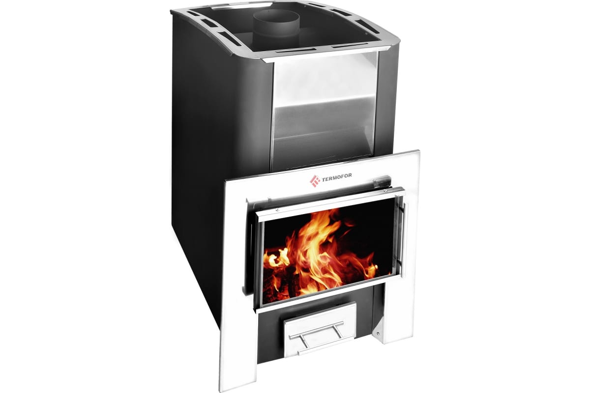 Дровяная печь ТЕРМОФОР Ниагара 18 Плазма антрацит ТФ23144 предназначена для отопления парного помещения до 18 кубометров, большая по объему каменка создана таким образом, что камни прогреваются равномерно и очень качественно.