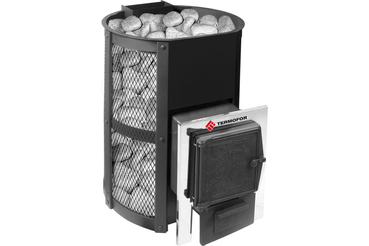 Дровяная печь ТЕРМОФОР Кольчуга 14-18 (чугунная дверца без парогенератора) ТФ23138 предназначена для отопления парильного помещения бани.