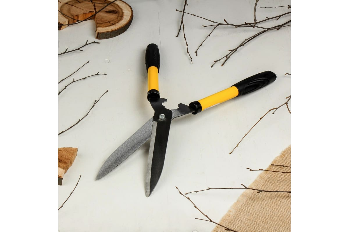 Садовые ножницы СИМАЛЕНД 55 см, резиновая рукоять, с чехлом 3808482 предназначены для формовки декоративных кустарников и подрезки кустарников.