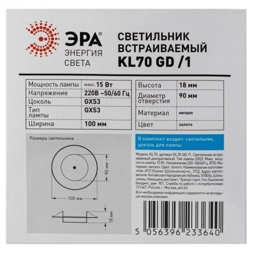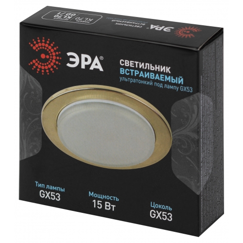 KL70 GD /1 Светильник ЭРА под лампу Gx53 тонкий, 220V, 13W, золото (40/2200)