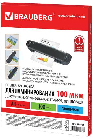 Пленка для ламинирования Brauberg А4 100мкм / 530801 (100шт)
