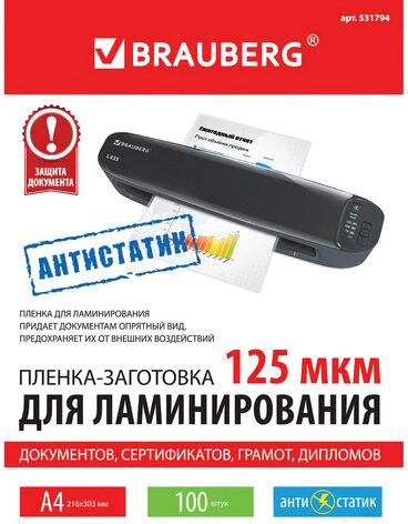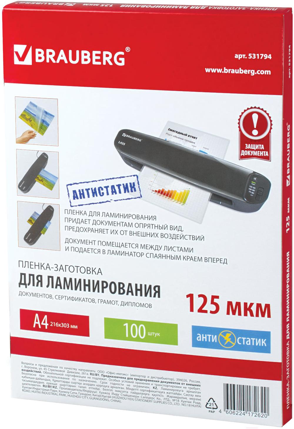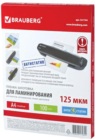 Пленка для ламинирования Brauberg А4 125мкм / 531794 (100шт)