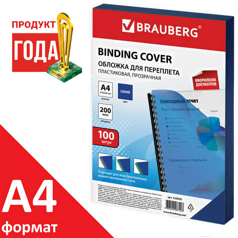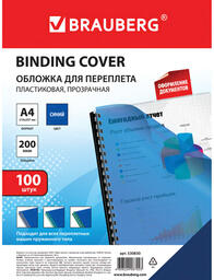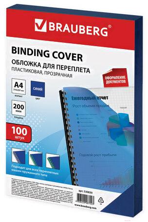 Обложки для переплета Brauberg А4 200мкм / 530830 (100шт, прозрачно-синий)