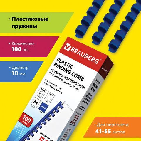 Пружины для переплета Brauberg 10мм / 530909 (100шт, синий)