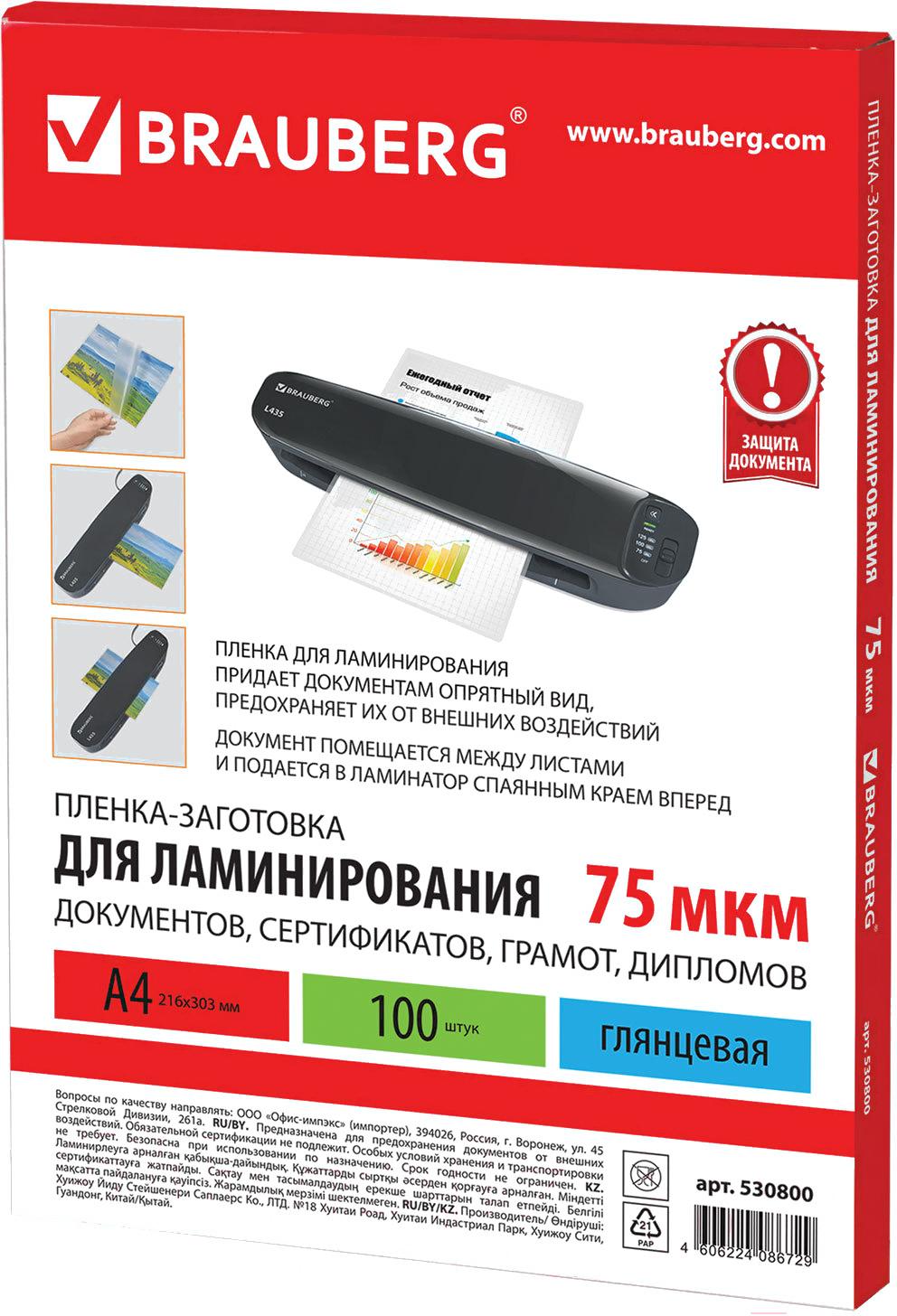 Пленка для ламинирования Brauberg А4 75мкм / 530800 (100шт)