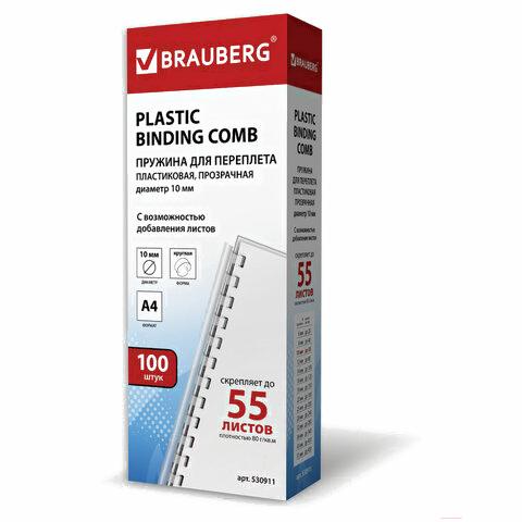 Пружины для переплета Brauberg 10мм / 530911 (100шт, прозрачный)