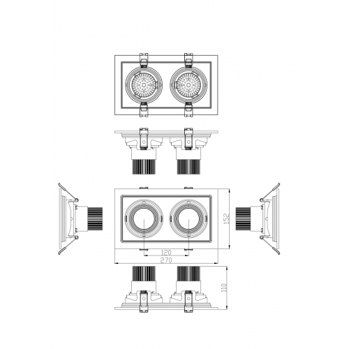 Светильник карданный встраиваемый ЭРА SKD-12-36-40K-W20 2х20Вт 4000K 3600Лм 270х150х110