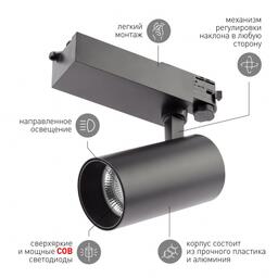 Трековый светильник трехфазный ЭРА SТR-30-36-30K-B30 узкий луч 3000K черный