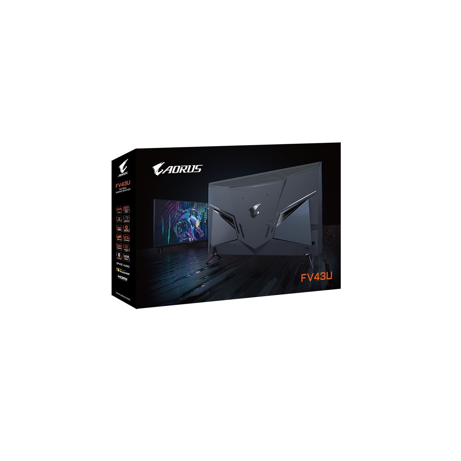 AORUS FV43U - це 43-дюймовий QD-дисплей з роздільною здатністю UHD, оснащений новітнім інтерфейсом HDMI® 2.1, частотою оновлення 144 Гц і MPRT 1 мс для максимально плавного ігрового процесу і приголомшливої якості зображення. 10-бітний колір і надширока колірна гамма 97% DCI-P3/150% sRGB забезпечують видатну точність і узгодженість кольору. Він сертифікований DisplayHDR1000 ™, щоб гарантувати приголомшливе якість зображення, неперевершені враження від ігор і розваг.