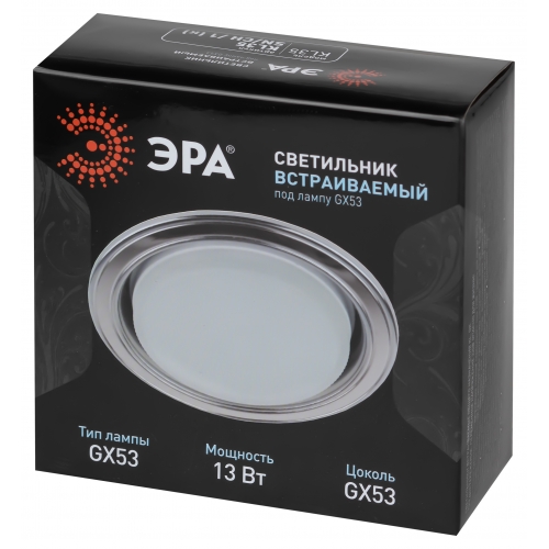 Встраиваемый светильник под лампу GX53 ЭРА KL35 SN/СН /1 под лампу GX53, 220V, 13W, сатин никель/хром