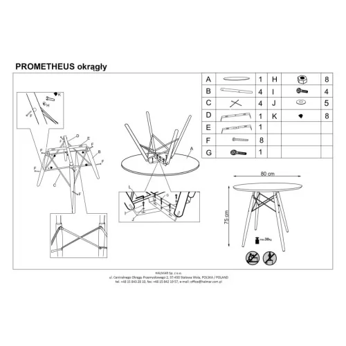Стол обеденный HALMAR PROMETHEUS OKRAGLY белый/бук, 80/75