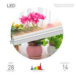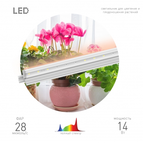 Светильник для растений, фитолампа светодиодная линейная ЭРА FITO-14W-T5-Ra90 полного спектра 14 Вт Т5