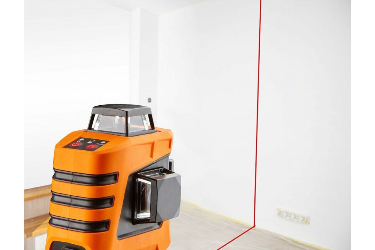 Перекрестный лазер оснащен самовыравнивающимся механизмом в диапазоне +/-4°, обеспечивающим точную работу без необходимости ручной настройки. Имеет световую и звуковую индикацию превышения порогового значения угла самовыравнивания.