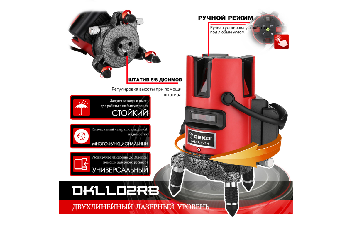 Лазерный самовыравнивающийся уровень DEKO DKLL02RB SET 4 065-0272