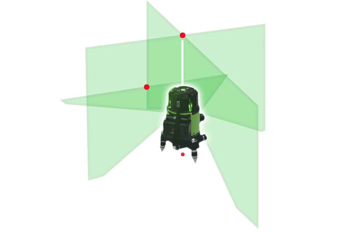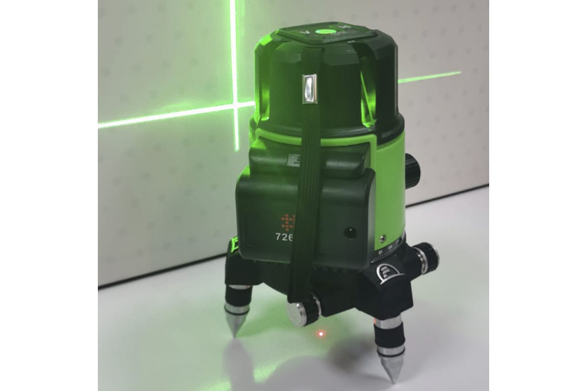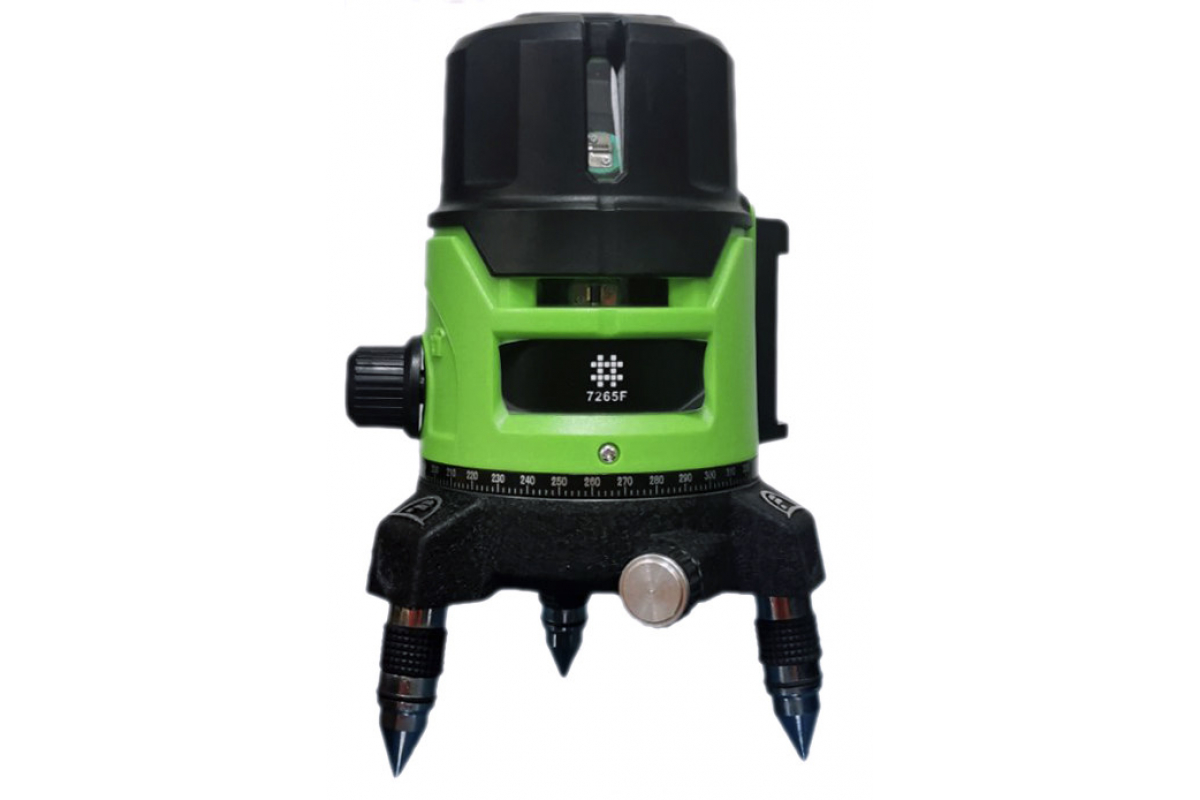 Лазерный уровень SHIJING 7265F проецирует 5 линий: 4 вертикальные и 1 горизонтальную, а также точку отвеса. Пригодится для работ внутри помещений и на открытых площадках.