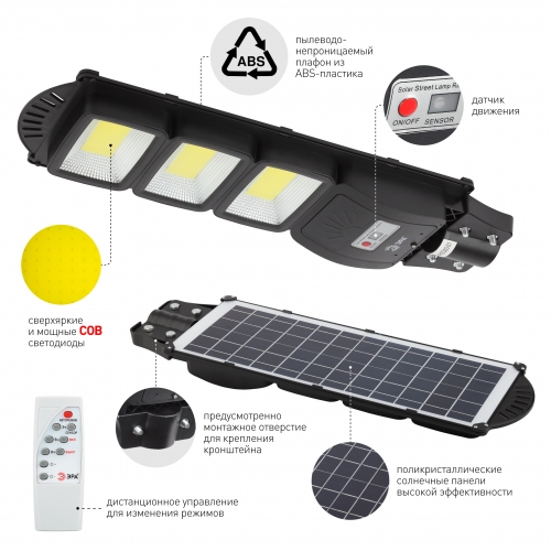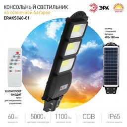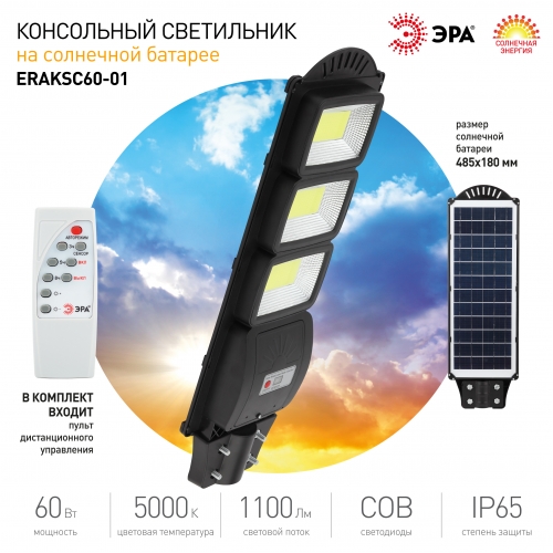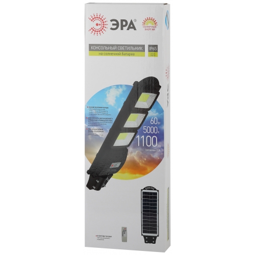 ЭРА Консольный светильник на солн. бат.,COB, 60W, с датч. движ., ПДУ, 1100lm, 5000К, IP65 (6/90)