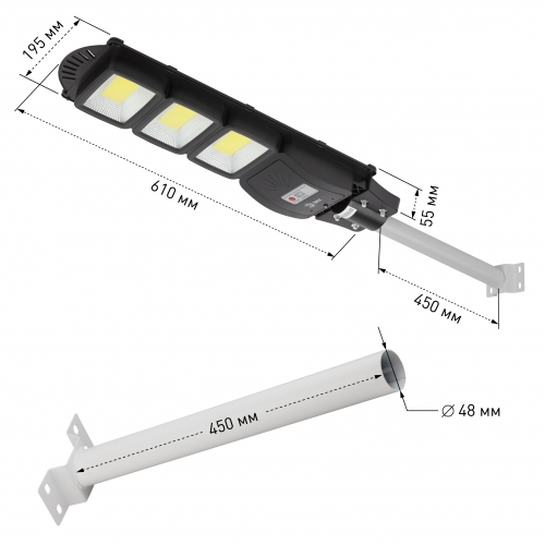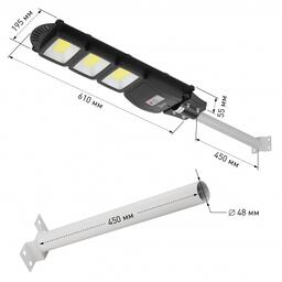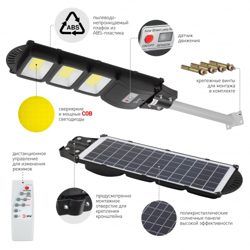 ЭРА Консольный светильник на солн. бат.,COB,с кронштейном,60W,с датчи. движ.,ПДУ,1100lm, 5000К, IP65