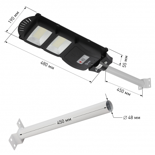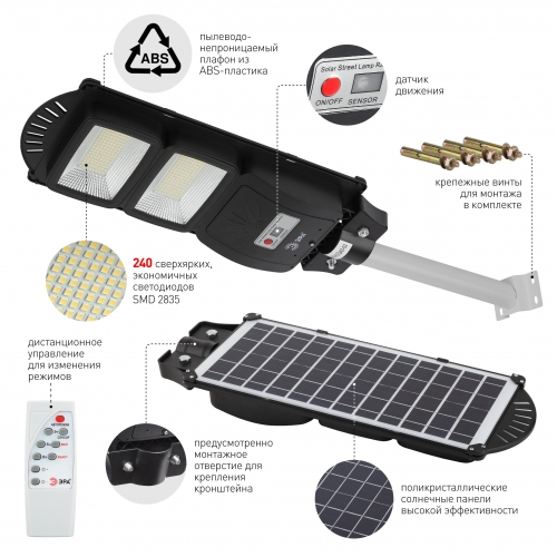 ЭРА Консольный светильник на солн. бат.,SMD,с кронштейном, 40W, с датч.движ., ПДУ,700lm, 5000К, IP66