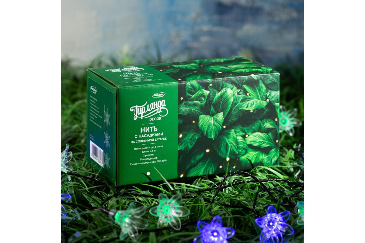 Нить Luazon DECOR Цветок, 4.5 м, 2 режима, синий/зеленый 6253349 пригодится для создания эффектных интерьерных украшений и зонирования помещения: ширмы, шторы, эффект звездного неба под потолком и многое другое. Применяется в декорировании лестниц, колонн, при изготовлении световых фигур, как фон при фото и видеосъемке.