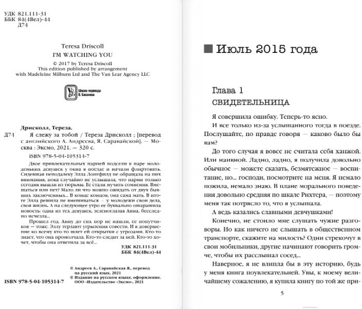 Книга Эксмо Я слежу за тобой / 9785041053147 (Дрисколл Т.)
