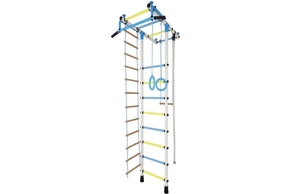 Комплекс предназначен для занятий в спортивных учреждениях или дома, рассчитан на детей от 3 лет. Устанавливается между потолком и полом враспор, регулируется по высоте в диапазоне от 244 до 299 см и выдерживает вес до 90 кг.