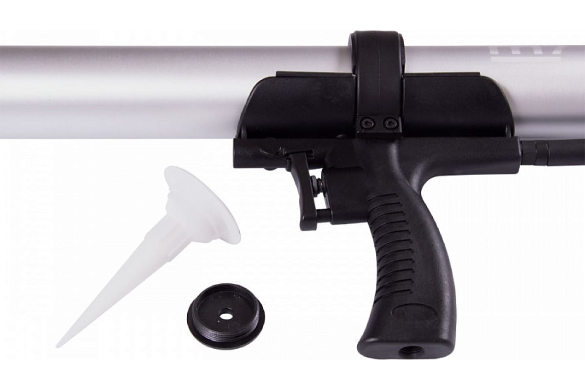 Пневматический шприц для герметика MIGHTY SEVEN для колбас SK-1131 обеспечивает дозированное нанесение герметиков, клеев, шпаклёвок и других материалов. Может заправляться как жёсткими тубами, так и мягкими фолиевыми картриджами («колбасами») объёмом 400 и 600 мл.