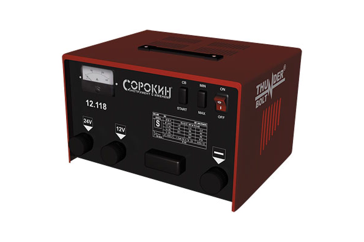 Пуско-зарядное устройство Сорокин 12.118 используется как источник питания для аккумуляторов на 12/24 В. Основная функция данного устройства не только зарядка, но еще и пуск двигателя. Агрегат работает от электрической сети, с напряжением 220 В. Прибор изготовлен с применением современных технологий. Аппарат отличается высокой надежностью и безопасностью при работе, которые обеспечиваются функцией защиты от перегрузок и изменения полярности.