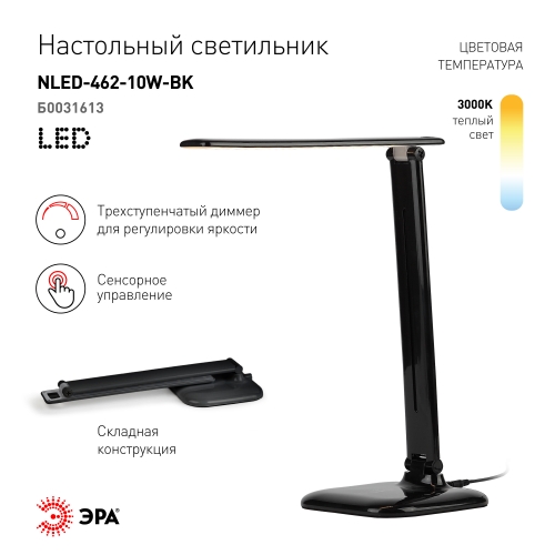 ЭРА наст.светильник NLED-462-10W-BK черный (22/264)