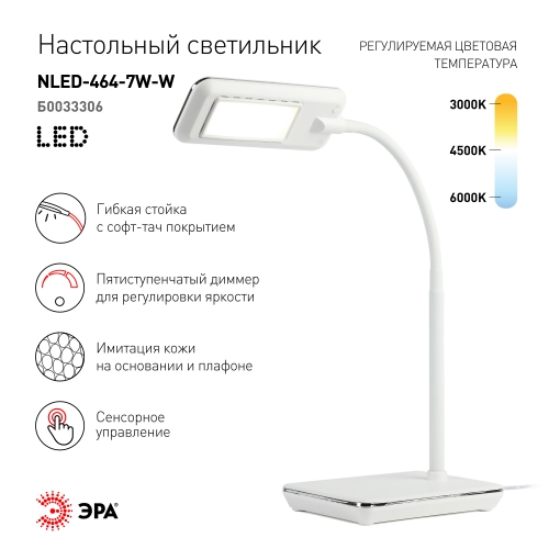 ЭРА наст.светильник NLED-464-7W-W белый (12/144)