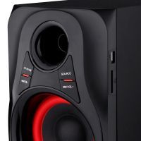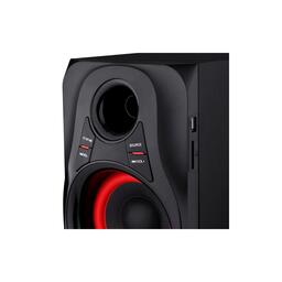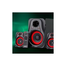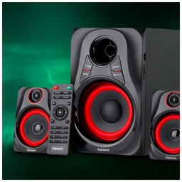 Мультимедійна акустична система Gemix SB-120BT з широким функціоналом. Яскраві червоні вставки на чорному корпусі виглядають стильно і оригінально. Конструкція відкритого типу дозволить відчути глибину баса. Корпус сабвуфера виконаний з дерева для глибокого і насиченого звучання. У даній моделі є все необхідне - вбудоване FM-радіо, роз'єми для підключення USB Flash і SD-card, модуль Bluetooth, вбудований програвач аудіофайлів, зручний пульт управління і навіть інформативний LED-дисплей.