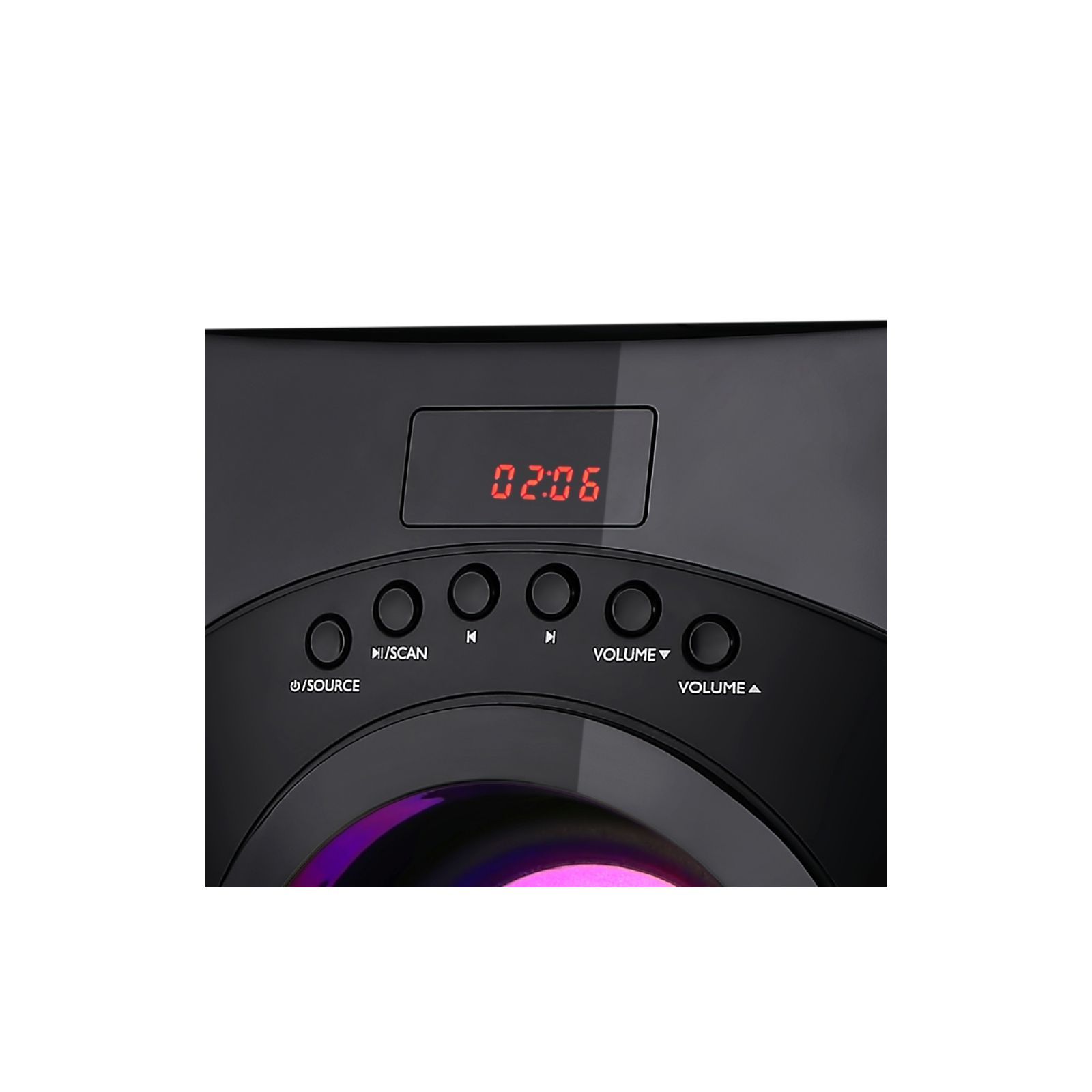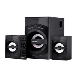 Мультимедійна акустична система Gemix SB-130X з відмінним і насиченим звучанням. Загальна потужність 56 Вт достатня для прослуховування музики, спільному перегляду фільмів, для озвучування ігор. Класичні форми акустичної системи гармонійно доповнені чорною глянсовою панеллю сабвуфера - модель відмінно виглядатиме у вас вдома. А підсвічування сабвуфера створить настрій та святкову атмосферу. Панель управління і дисплей зручно розташовані на передній панелі сабвуфера. Модель оснащена вбудованим USB портом, Карт Рідером для відтворення звуку з зовнішніх джерел, а також FM приймачем з пам'яттю до 100 станцій.