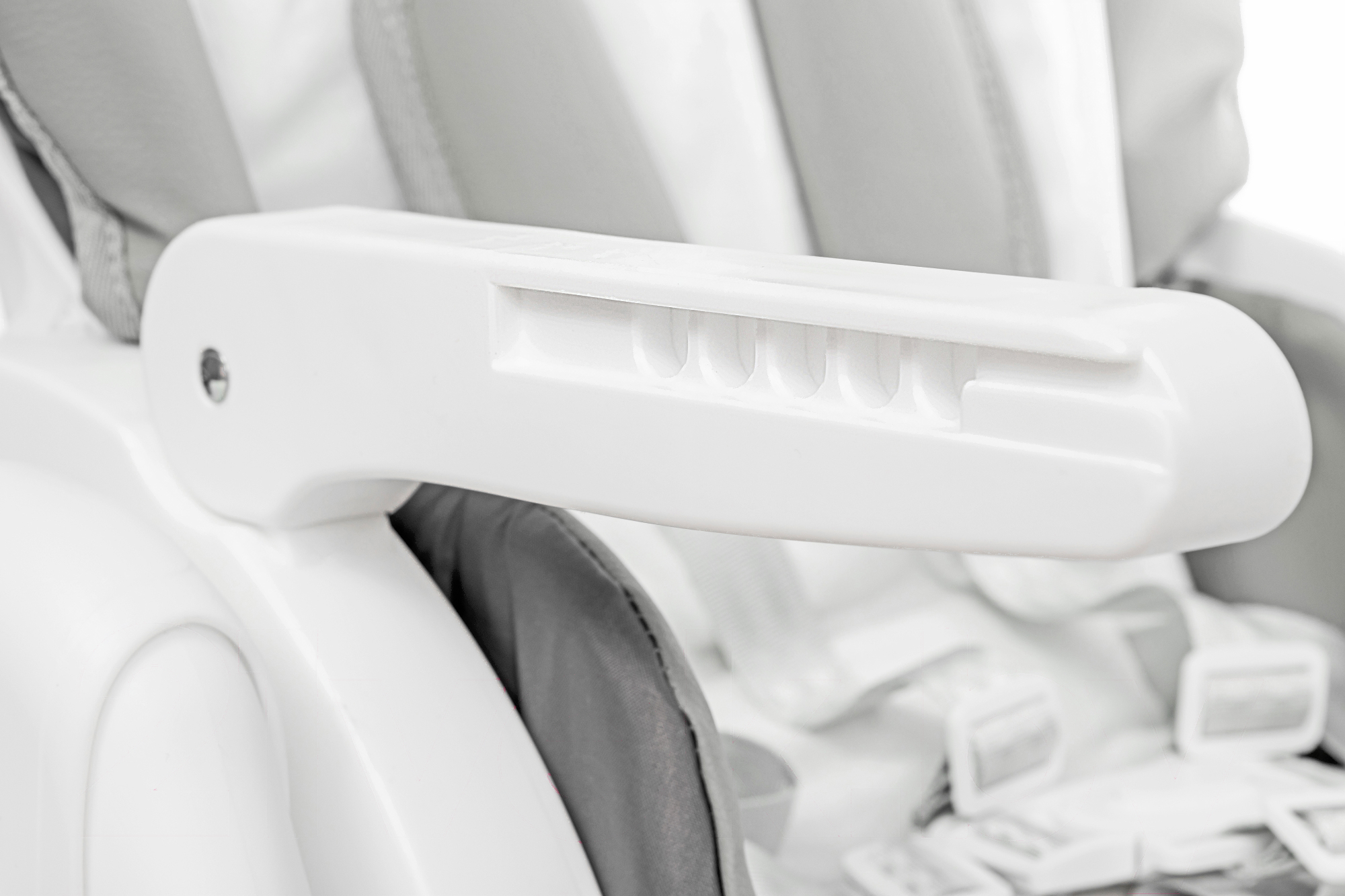 Возможности регулировкивысота подножки (3 положения), высота сиденья (7 положений), наклон спинки (3 положения), расстояние от столика до спинки (3 положения), наклон подножки (3 положения)