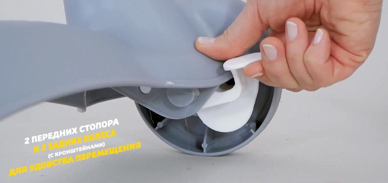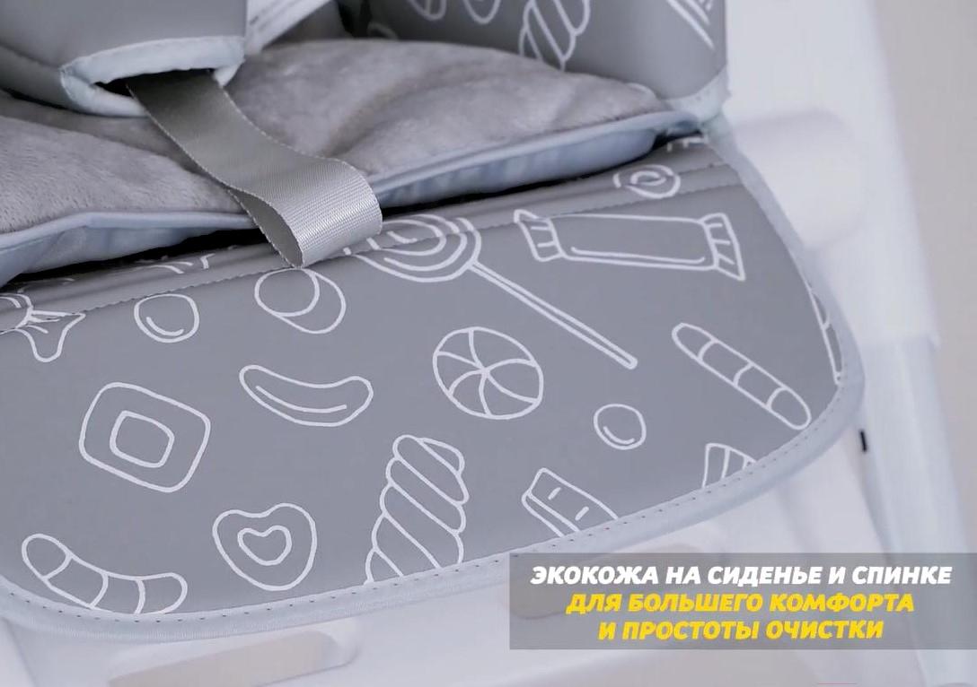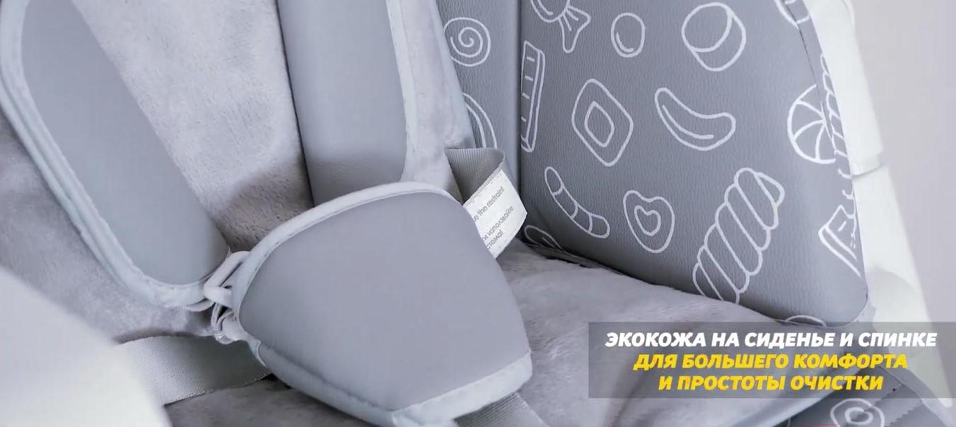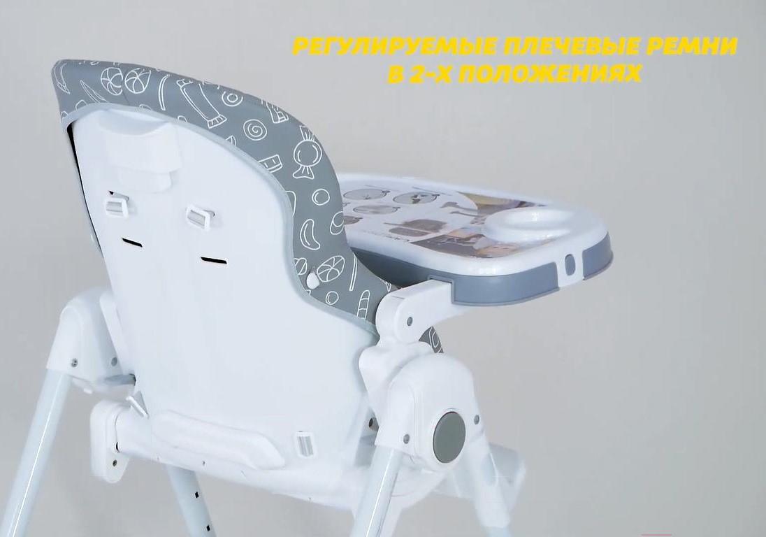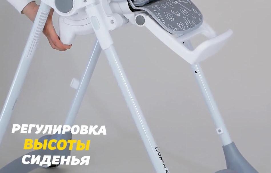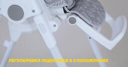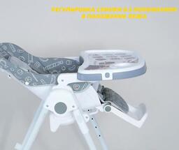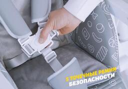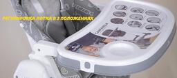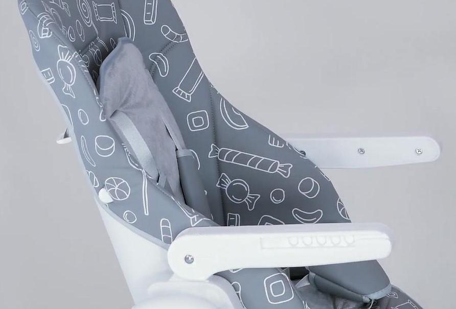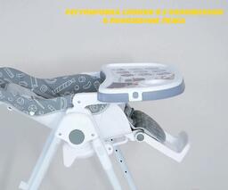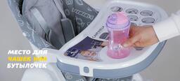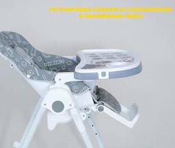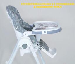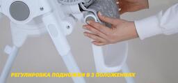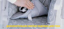 Возможности регулировкивысота сиденья (6 положений), наклон спинки (5 положения), расстояние от столика до спинки (3 положения), высота ремней (2 положения), наклон подножки (3 положения)