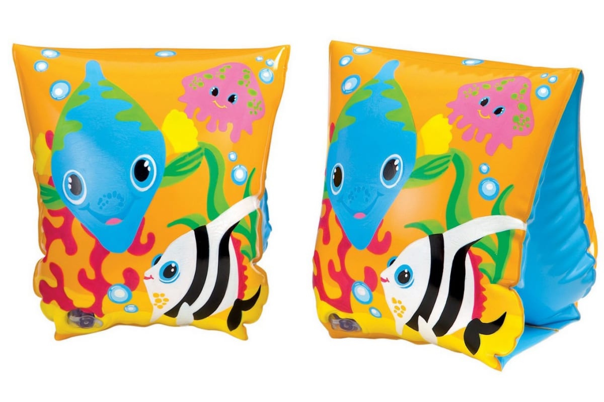 Нарукавники Intex рыбки, 23х15см 58652 предназначены для защиты и поддержания в воде детей от 3 до 6 лет. Яркая окраска нарукавников служит маячком для родителей, поэтому ребенок постоянно находится под контролем.
