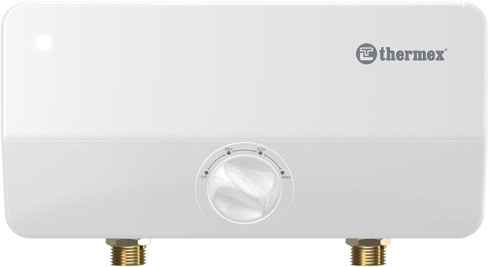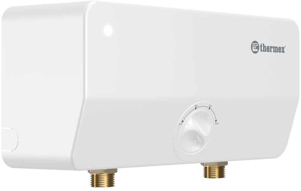 Водонагреватель проточный, электрический нагрев, мощность 8 кВт, производительность 4.5 л/мин, вертикальная установка, подводка нижняя, защита от перегрева.