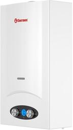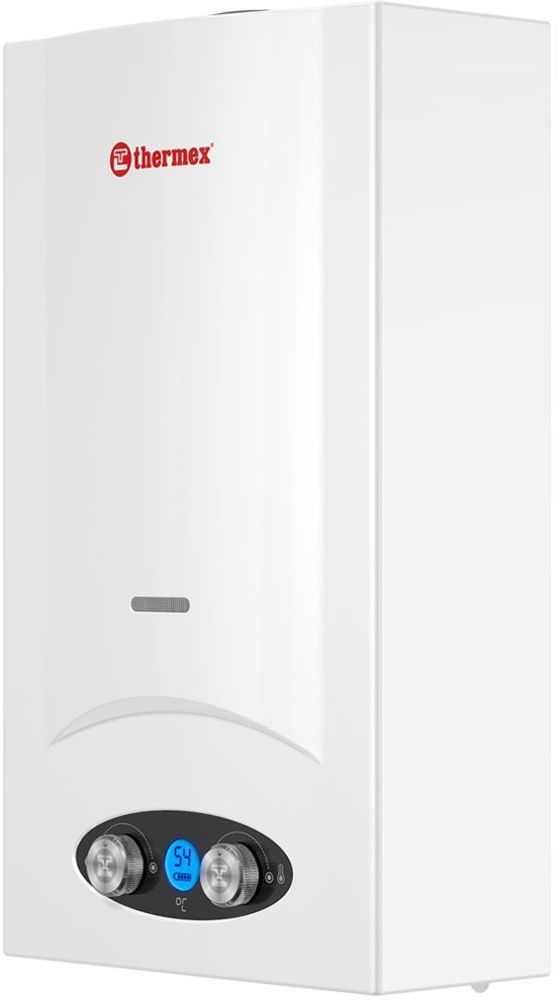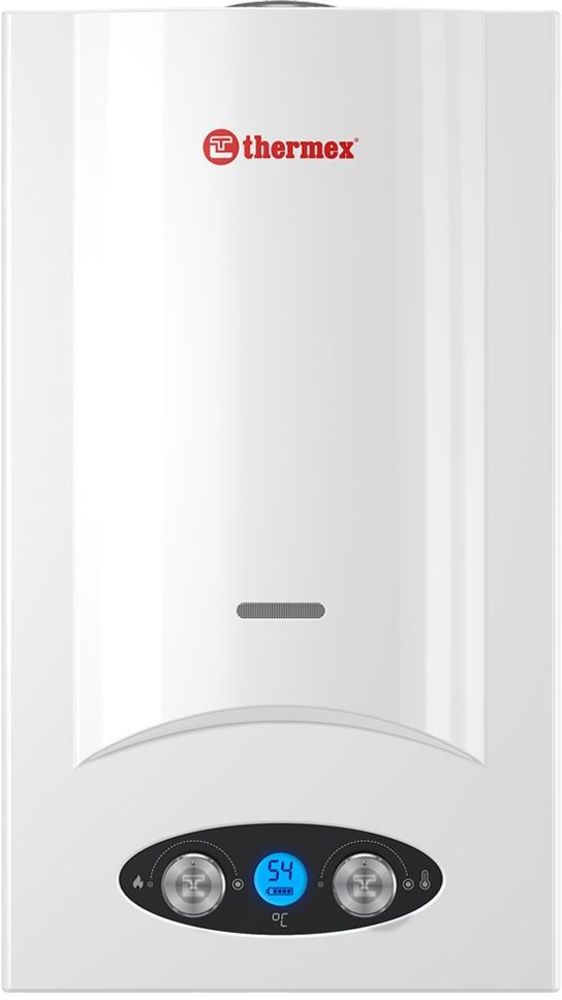 Водонагреватель проточный, газовый нагрев, мощность 20 кВт, производительность 10 л/мин, вертикальная установка, подводка нижняя, защита от перегрева.