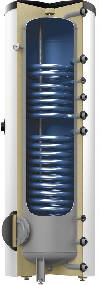 Водонагреватель накопительный, косвенный нагрев, объем 744 л, мощность 93 кВт, производительность 37.91 л/мин, вертикальная установка, подводка боковая, максимальная температура нагрева 95 °C, теплоизоляция.