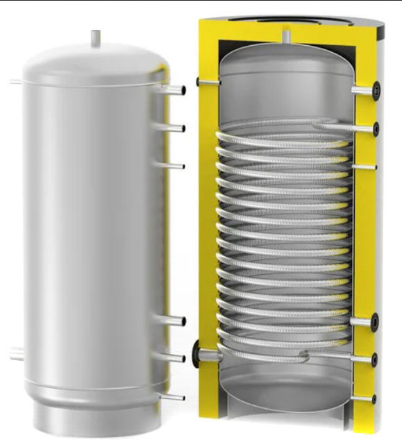 Водонагреватель проточно-накопительный, косвенный нагрев, объем 295 л, вертикальная установка, подводка боковая, максимальная температура нагрева 95 °C, защита от перегрева, теплоизоляция.
