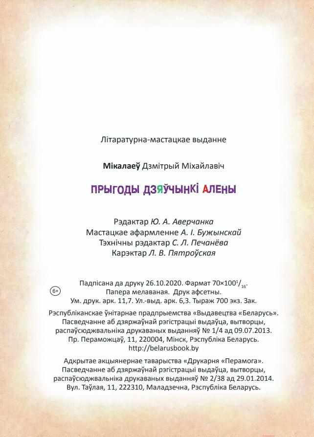 Книга Издательство Беларусь Прыгоды дзяўчынкі Алёны (Мікалаеў Д. М.)
