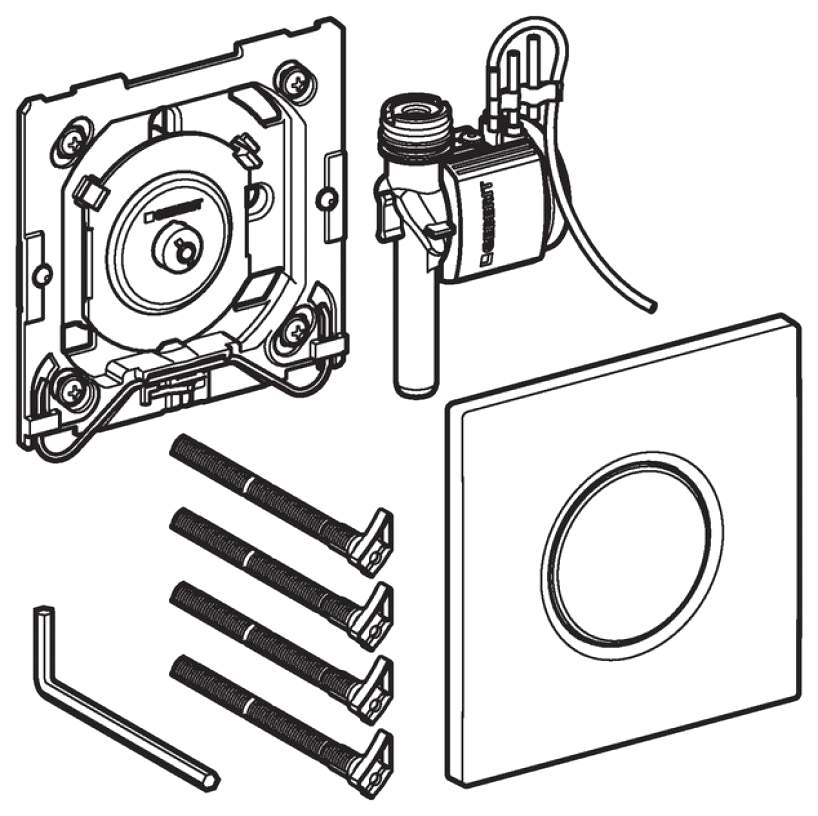 - Комплектация клавиша смыва; комплект креплений