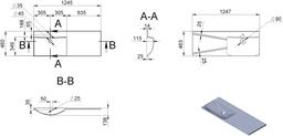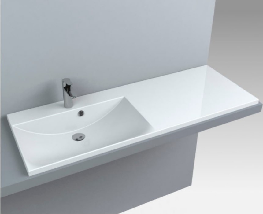 Умывальник врезной, на тумбу, на столешницу, ширина 1248 мм, длина 463 мм, форма: прямоугольная, искусственный мрамор, отверстие под смеситель, отверстие под перелив.
