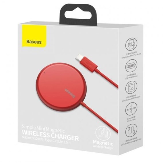 Зарядное устройство Baseus Wireless Charger MagSafe Simple Mini 15W Red (WXJK-H09) for iPhone 12/13 series