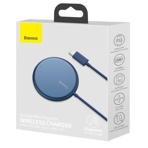 Зарядное устройство Baseus Wireless Charger MagSafe Simple Mini 15W Blue (WXJK-H03) for iPhone 12/13 series
