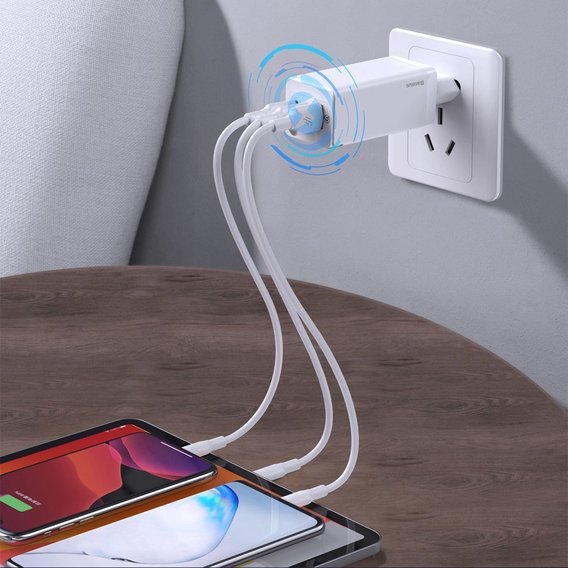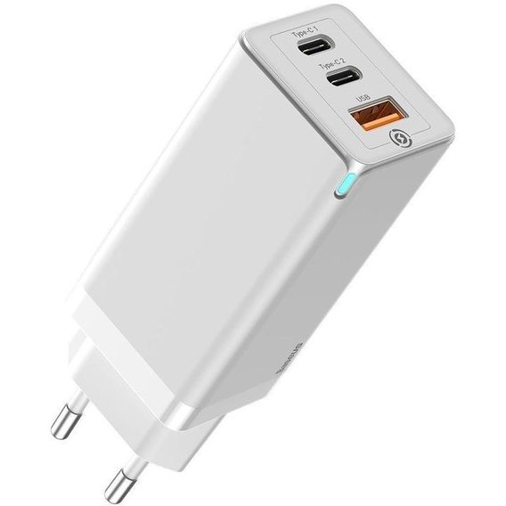 Зарядное устройство Baseus USB-C Wall Charger GaN2 2xUSB-C+USB 65W White (CCGAN-B02)