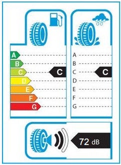 - Сцепление с мокрым покрытием Этот параметр обозначает способность протектора шины удерживать контакт с дорожным покрытием. Обозначение A означает максимальный уровень, а F - минимальный уровень. У шин с высоким показателем тормозной путь на мокрой дороге будет значительно короче. C