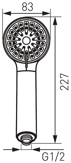 Душевая лейка. Круглая форма 83 мм. Количество режимов ручного душа: 3. Easy Clean System - легкое устранение накипи.