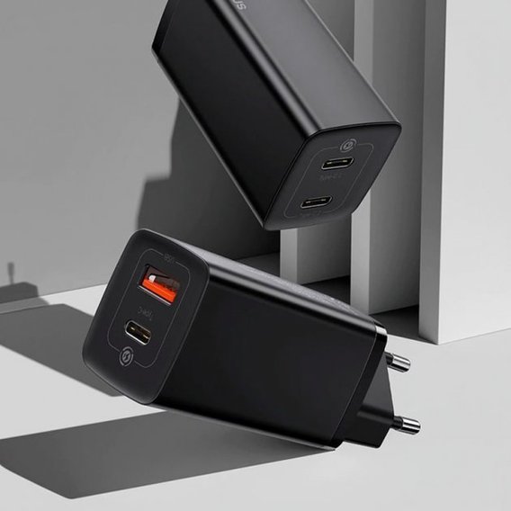 Зарядное устройство Baseus USB-C Wall Charger GaN2 2xUSB-C+USB 65W Black (CCGAN-B01)