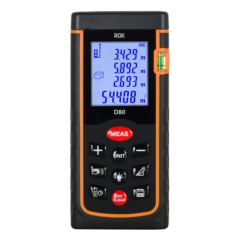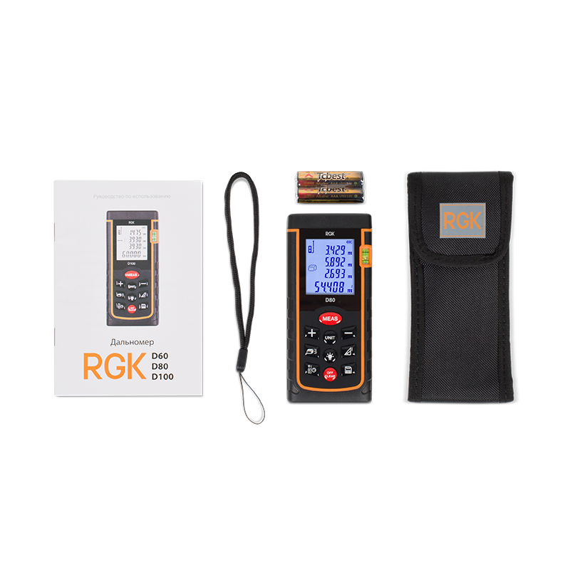 - Комплектация Лазерный дальномер RGK D80, Чехол, Элементы питания, Инструкция