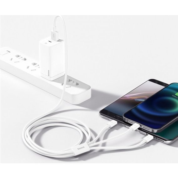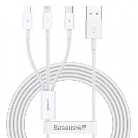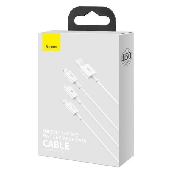 Кабель Baseus USB Cable to Lightning/microUSB/USB-C Superior Series Fast Charging 3.5A 1.5m White (CAMLTYS-02)