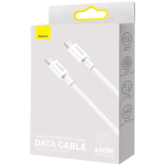 Кабель Baseus Cable USB-C to USB-C Superior Series PD 100W 2m White (CATYS-C02)